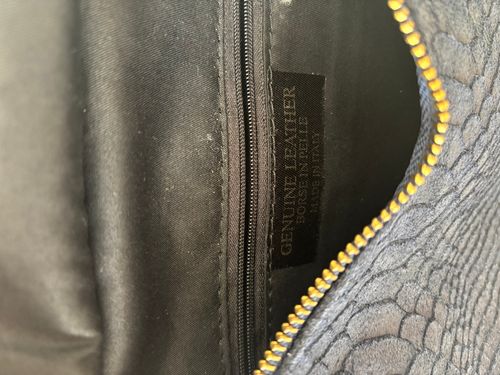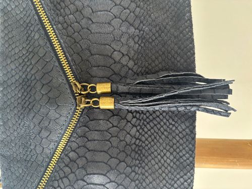 Pochette daim en cuir bleu effet crocodile avec lanière